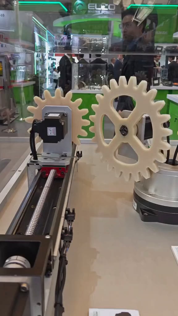 Two gears rotate without touching each other.
